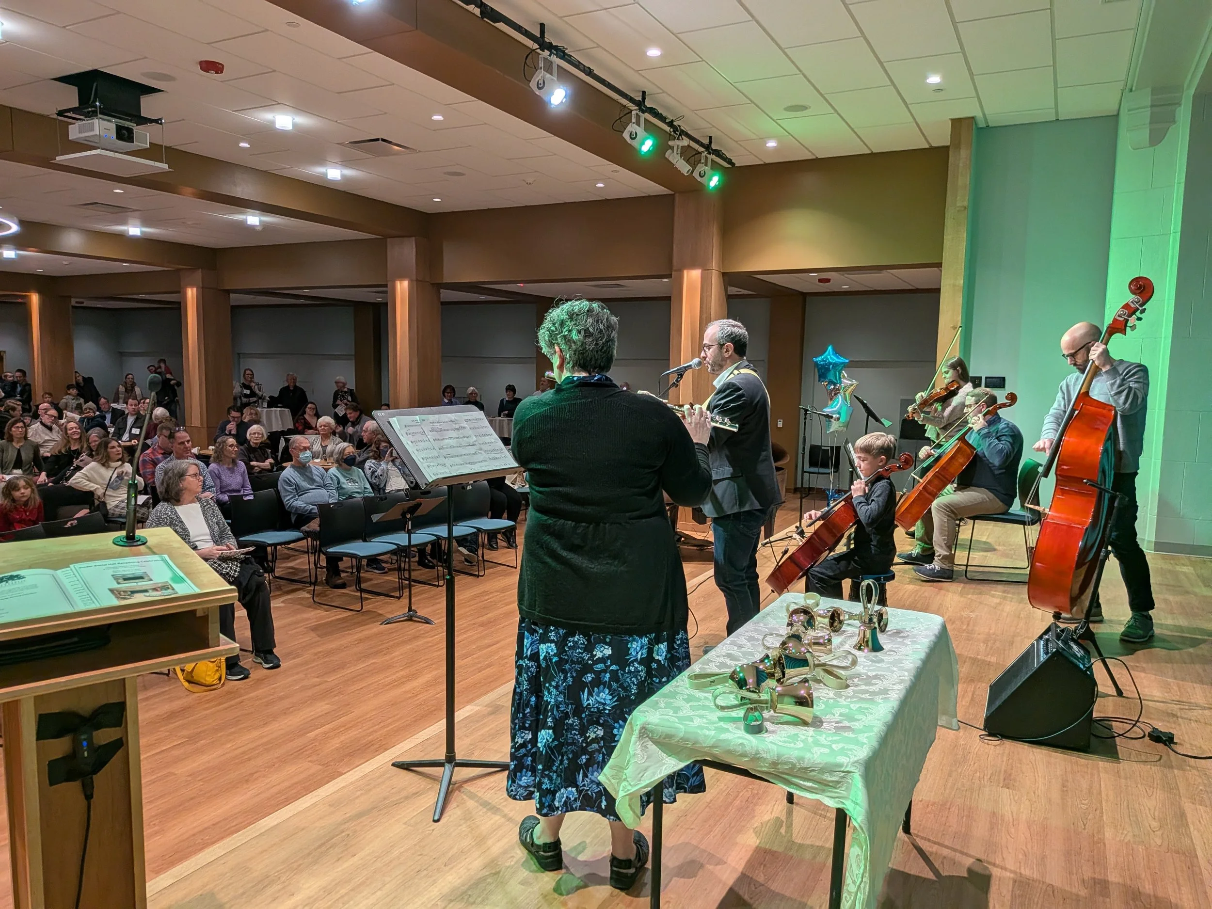 To mark the completion of this project, about 200 church-goers filled the Social Hall on Sunday, January 11, 2026, for a joyous reopening celebration. Attendees enjoyed short performances by various Peoples Church musical groups; words of gratitude for the work of contractors and church volunteers; and a special blessing of the new space by our clergy.